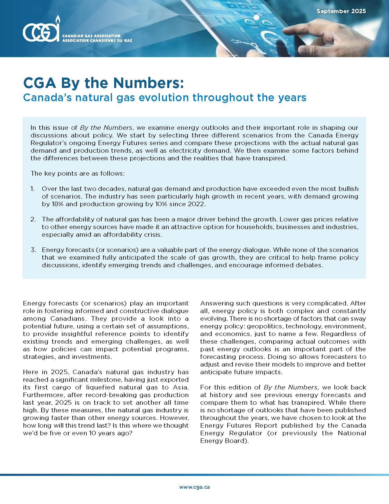 The natural gas delivery industry serves households and businesses across the country. With the data that stems from this energy delivery, the Canadian Gas Association is able to provide information and analysis to enhance understanding of Canada’s natural gas sector.